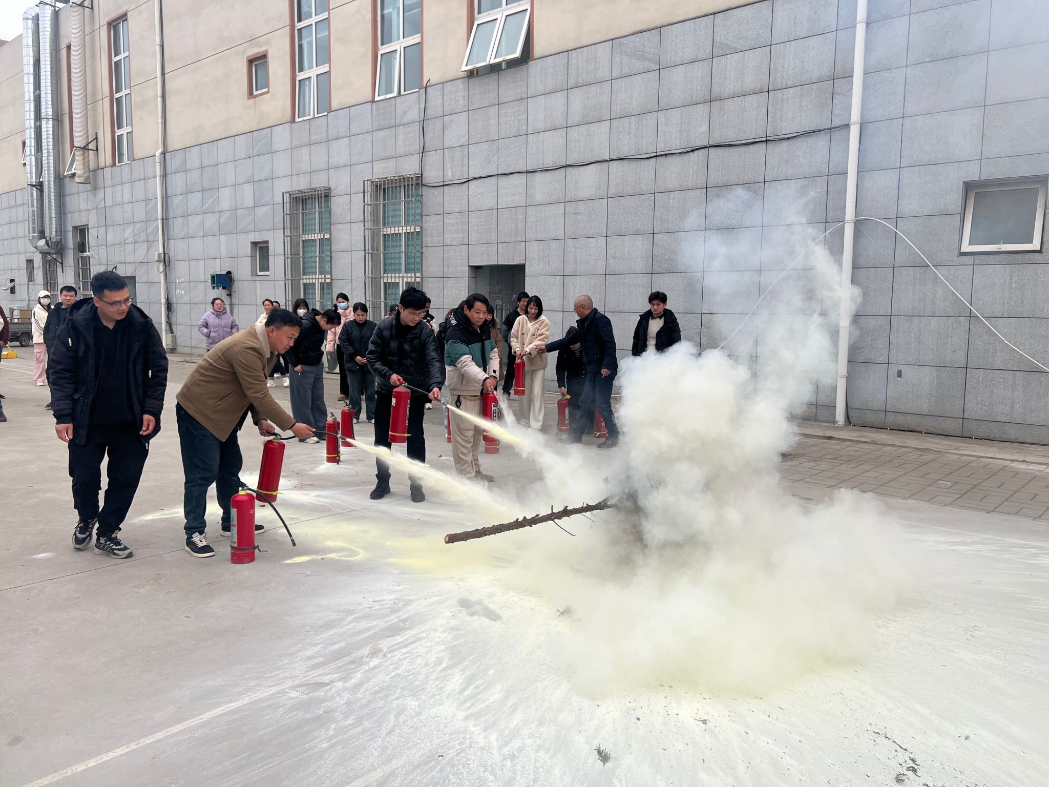 为了让消防安全培训落实落细,在保卫处消防科的指导下,全体商户进行了灭火实操演练。