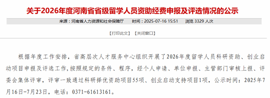 近日,河南省人力资源和社会保障厅正式公布了2026年度留学人员科研择优资助项目及创业启动支持项目的评审结果。我院卢艳阳博士凭借其申报的科研项目成功入选科研择优资助名单,获得项目经费5万元人民币。
