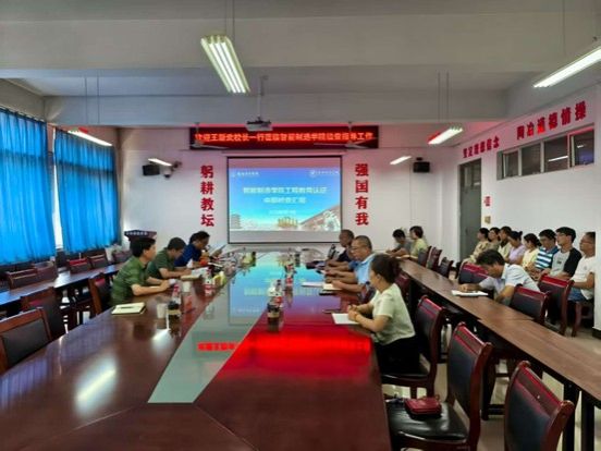 为扎实推进工程教育认证工作,8月18日下午,副校长王新武率教务处处长石念峰、教学质量监测与评估中心主任董羽冲一行5人到我院CS304会议室,对机械设计制造及自动化专业工程教育认证工作进行中期检查。学院院长朱德荣、党委书记贺艺、教学副院长沈俊芳、党委副书记孟展、专业认证工作小组全体成员参会。会议由质评中心主任董羽冲主持。