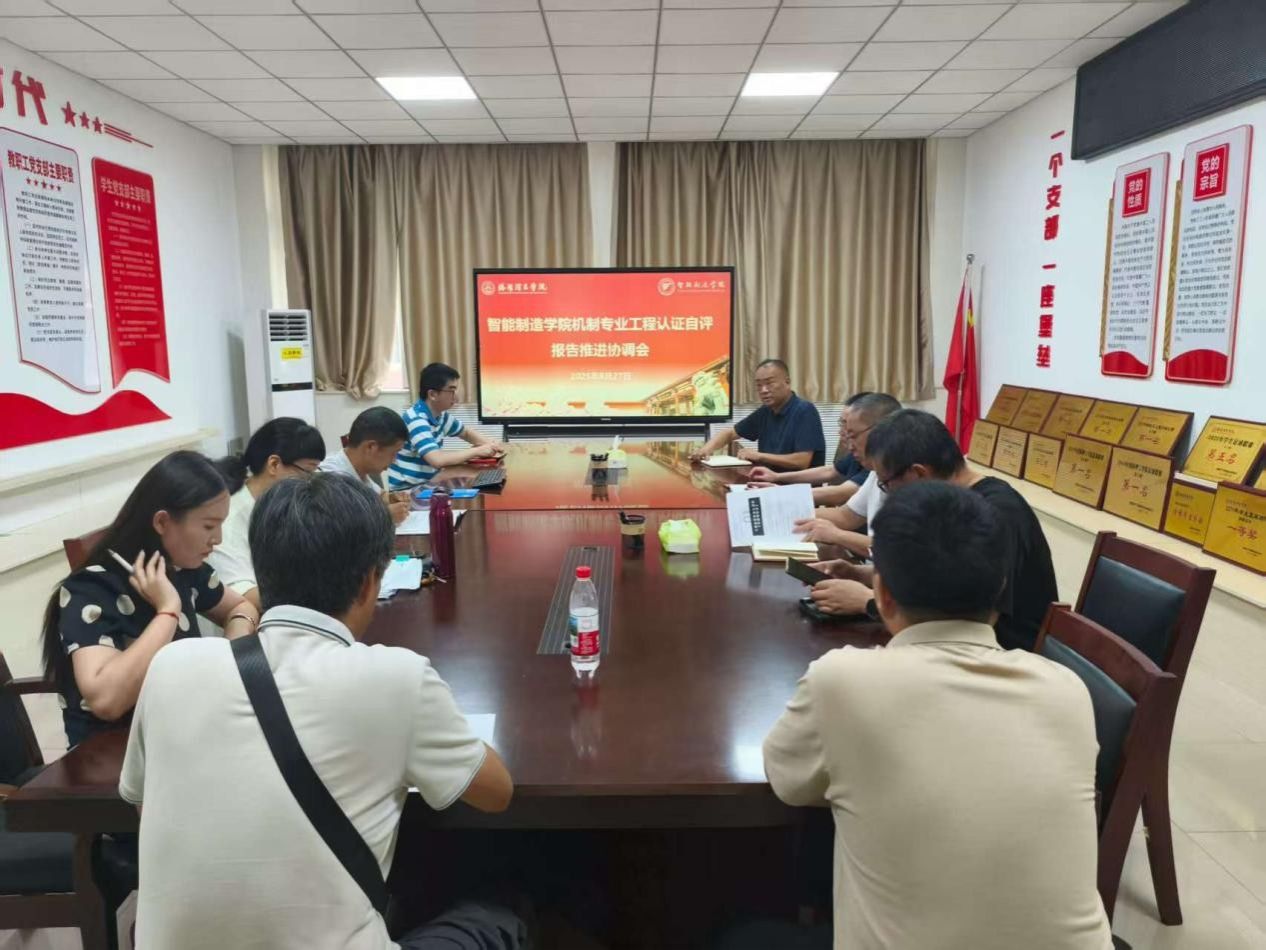 8月27日下午6:00,学院在机械楼CS301召开“智能制造学院机制专业工程教育认证自评报告推进协调会”。领导小组组长朱德荣、贺艺,副组长孟展、吴锐、沈俊芳及自评报告七大模块撰写负责人参会。
