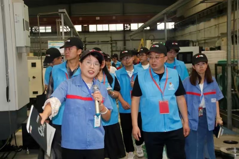 我院智领“企”航暑期社会实践团于6月10日上午到达鸿元轴承,随后在研发部部长李工的带领下参观公司研发部门、制作厂房并听讲解员讲解棒材、锻造、车加工、热处理、磨加工、超精加工、零件终检、防锈入库等数字化生生产线。