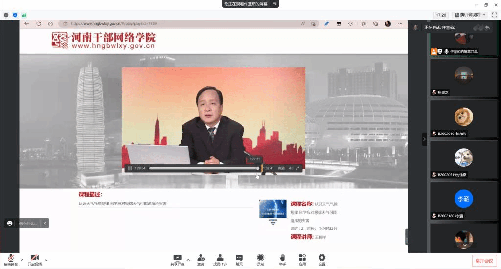 讲座详细介绍了天气、气候以及气候灾害的特征,系统讲解了近年来影响严重的主要气象灾害的实例,分析了河南天气气候变化规律及其对经济社会发展的影响,并提出防范气候之险,要发挥好气象防灾减灾第一道防线作用,同时要用好气候之利,服务河南经济社会高质量发展;讲座围绕习近平总书记关于应急管理、防灾减灾救灾、国家安全等的重要论述,结合全国各地的典型应急突发事件,分析了当前我省应急管理面临的形势和任务,既是一堂应急管理的知识课,又是一堂应急管理的政治课,对我院做好应急管理工作提供了很好的指导和帮助。