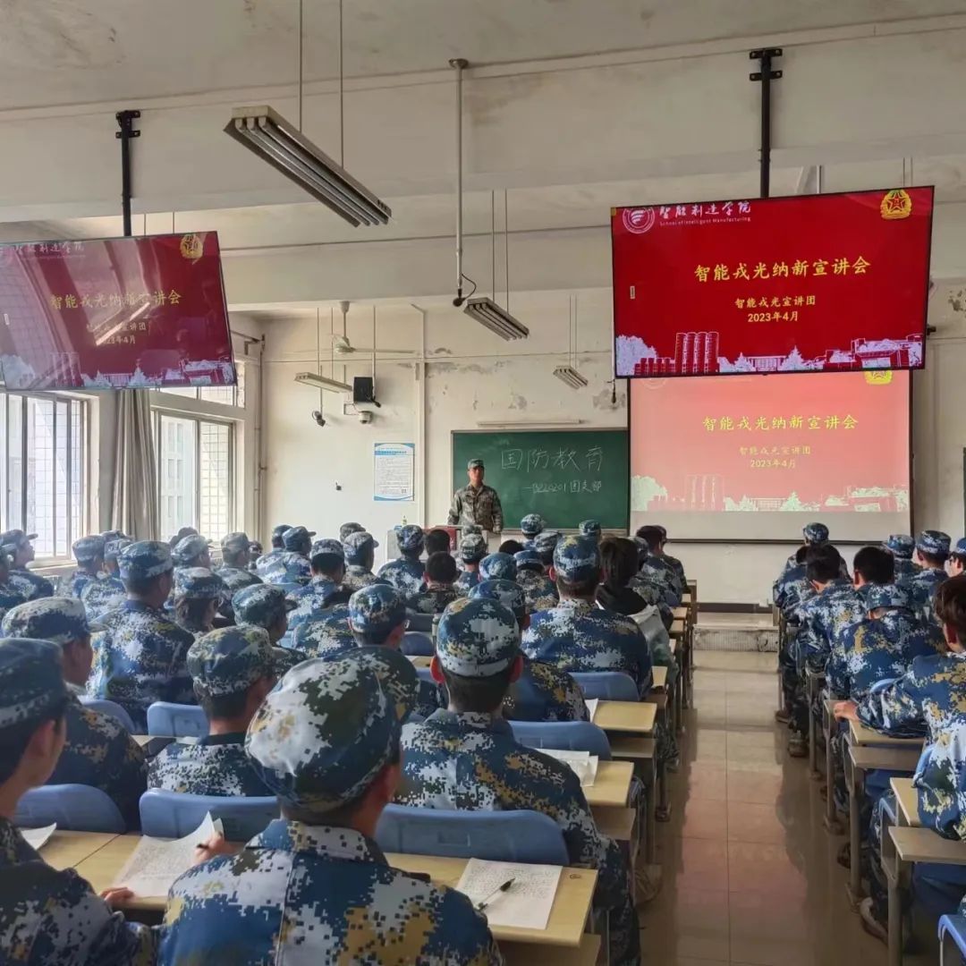 代燃明,暂新建,乔航洲等智能戎光大队成员从以下三个方面开展国防教育:一是退役大学生入伍经历;二是国防教育的重要性;三是希望同学们要树立国防观念,他们深入浅出地为同学们讲述了国防教育的重要性,普及了国防和军队知识,传递了国防“接力棒”,勉励同学们要树立国防意识,传承红色基因,赓续红色血脉,争做时代新少年。