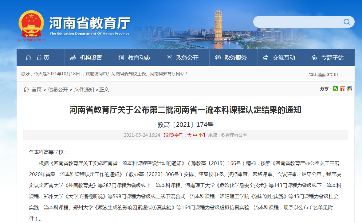 河南省教育厅发布了《河南省教育厅关于第二批省级一流本科课程认定名单的公示》,我院《机械原理》、《过程装备控制技术》2门课程被拟认定为第二批省级一流本科课程。我院《机械工程材料》获批第一批省级一流本科课程,截至目前,我院有3门课程获批省级一流课程。