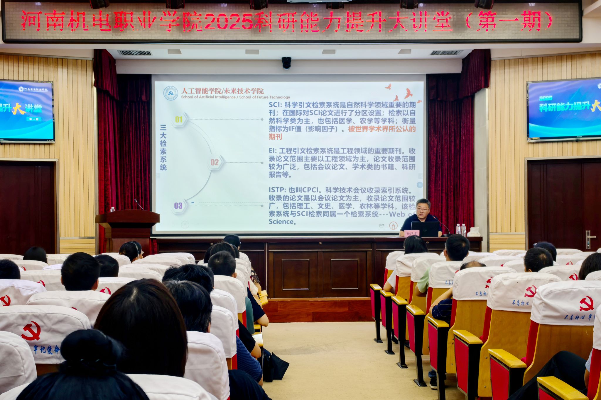 此次报告会是河南机电职业学院举办的“科研能力提升大讲堂(第一期)”讲座之一,旨在为教师搭建了一个学习和交流的平台,营造常态化、长效化科研学习氛围,激发科研创新活力,提升教师的科研能力和学术水平。
