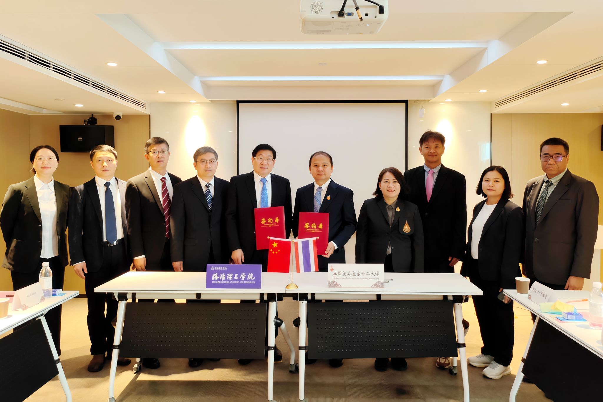 泰国曼谷皇家理工大学国际学院院长素帕蓬·阿卡平、副院长素波特·拉塔纳蓬、副院长查尼达·蓬森、执行委员会委员那帕道尔·阿姆迪及我校相关职能部门负责人参加签署仪式。